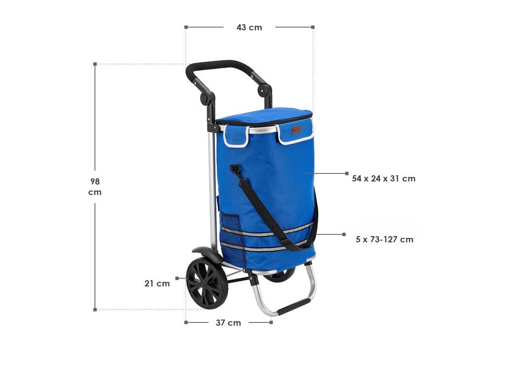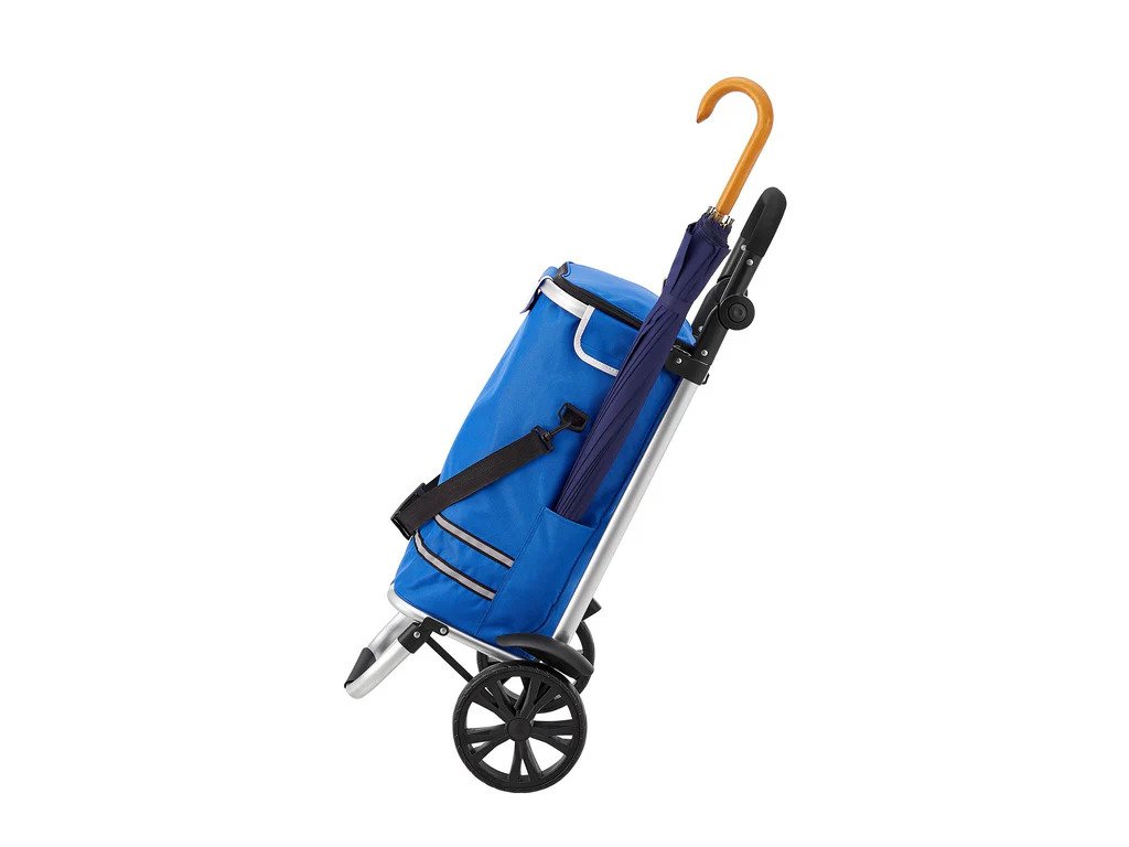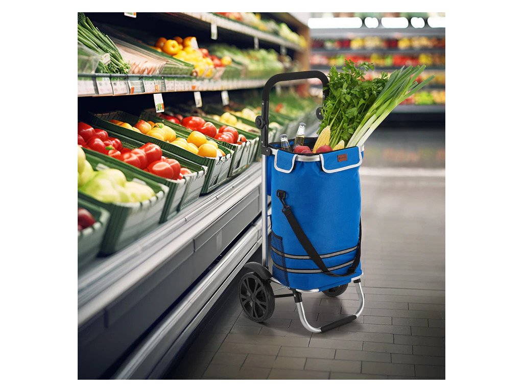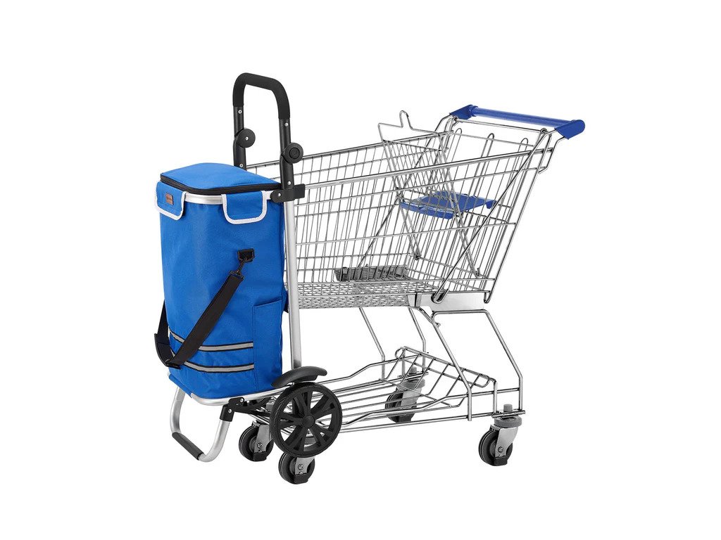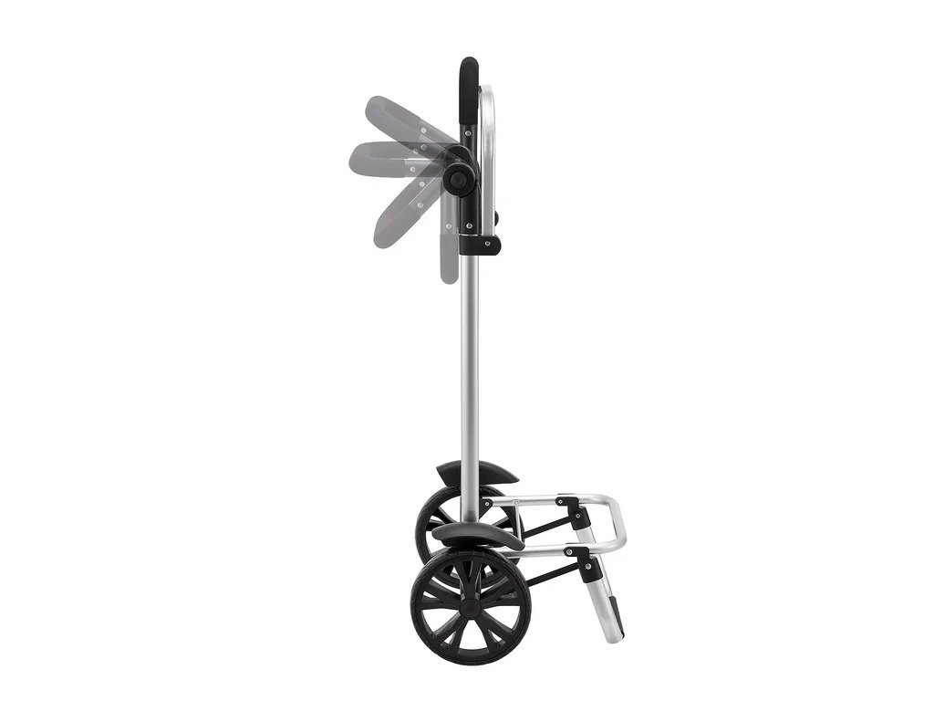 A bevásárlókocsi laposra összecsukható, így könnyen elhelyezhető az előszobában, az autóban vagy a kamrában. Ezért nemcsak nagy bevásárlásokhoz ideális, hanem gyors sétákhoz vagy személyes tárgyak rövid távú szállításához is.