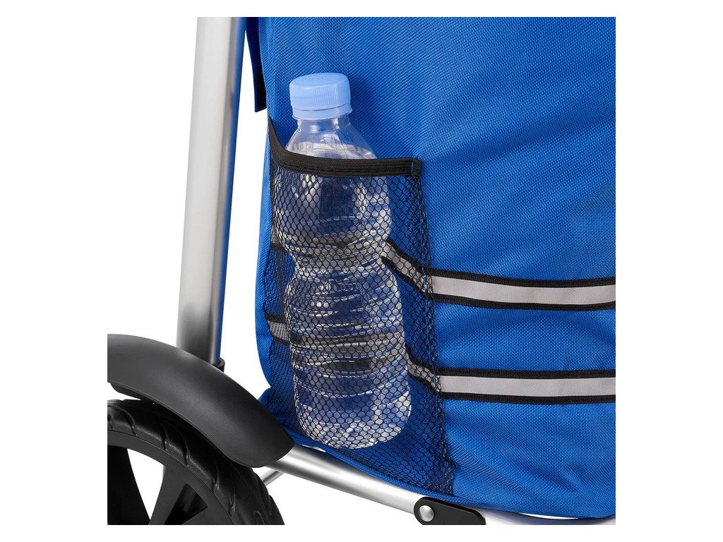 Az alumínium váz szilárd és egyben könnyű, így a nehezebb bevásárlások is könnyen kezelhetők. A fényvisszaverő elemek javítják a láthatóságot rossz látási viszonyok között. Horgok is vannak rajta, amelyekkel bevásárlókosárra akasztható, ha boltban vásárol.