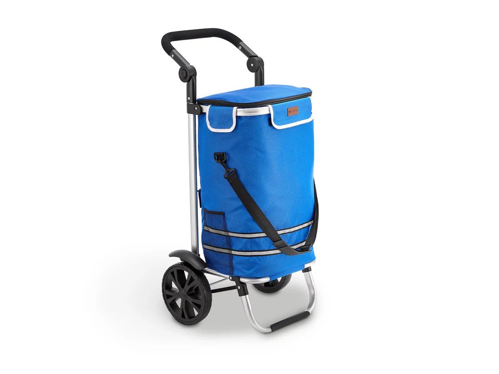 A bevásárlókocsi kényelmes szállítást biztosít élelmiszereknek és egyéb tárgyaknak otthon és a szabadban egyaránt. Könnyű kezelhetősége és praktikus kiegészítői megkímélik Önt a nehéz táskák cipelésétől és megkönnyítik a bevásárlást.
