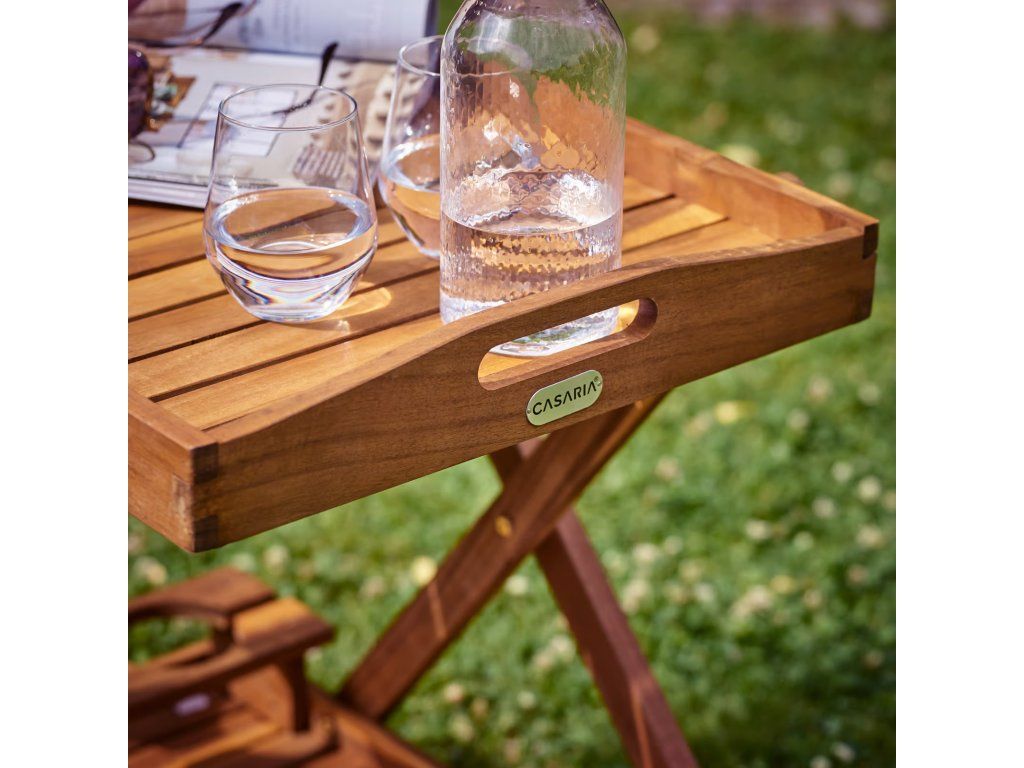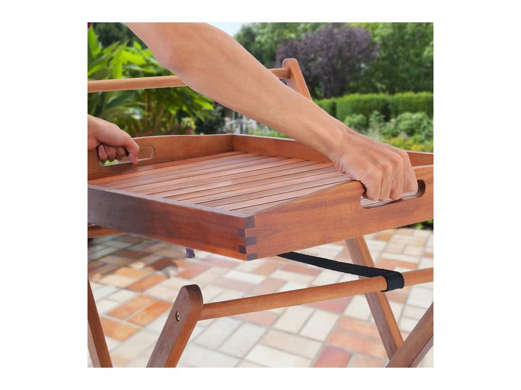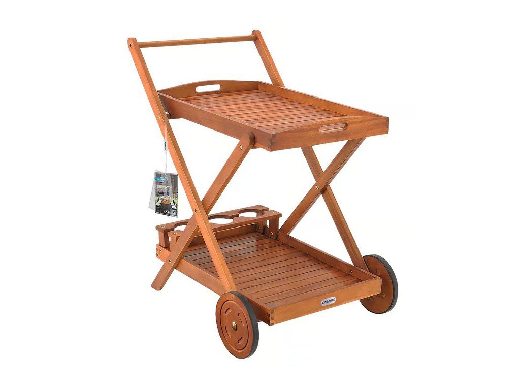 Stílusos tálalókocsi két kerékkel, amely praktikus és mobil tárolóhelyet kínál két szinten. Bőséges helyet biztosít tea, kávé vagy ételek felszolgálásához, és a minőségi kerekeknek köszönhetően könnyedén oda tolható, ahol éppen szükség van rá. A felső rész szükség esetén könnyen levehető, és önálló tálcaként is használható. Az alsó szint praktikus palacktartókkal van felszerelve, amelyekbe akár három palack is elfér. A tálalókocsi ideális kiegészítő grillezéshez vagy kerti partikhoz, ugyanakkor elegánsan illeszkedik a konyha vagy a nappali belső terébe is.