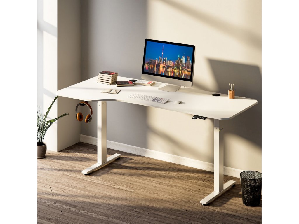 Az állítható fehér irodai asztal ideális munkához vagy otthoni tanuláshoz. Az elektromos motor segítségével gyorsan és könnyedén felemelheti vagy leengedheti az asztallapot. A vezérlő két praktikus memóriahellyelrendelkezik, így elmentheti az optimális ülő és álló pozíciót. Nemcsak egészségesebben, hanem sokkal kényelmesebben is dolgozhat. A 15 mm vastag karbonrétegű munkalap és a stabil szénacélból készült keret tartóssá teszi az asztalt.