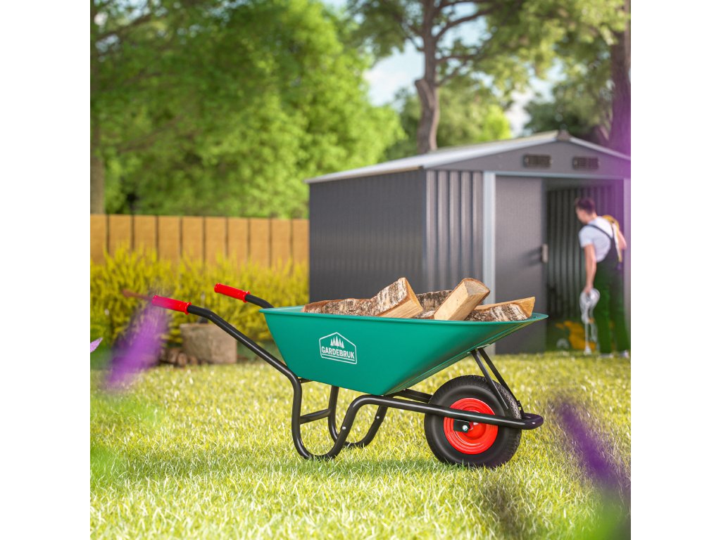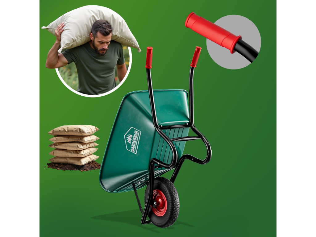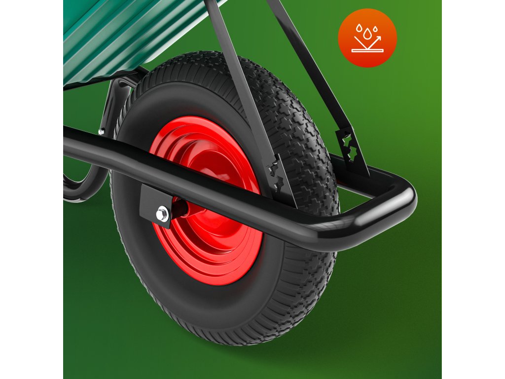Talicska robusztus, ráhelyezhető, ütésálló polipropilén tartállyal – megkönnyíti a levelek, fák, kövek, különféle építőanyagok vagy szerszámok szállítását a kertben vagy az építkezésen. A váz erős, porszórt acélból készült. Maximális terhelhetősége 150 kg.