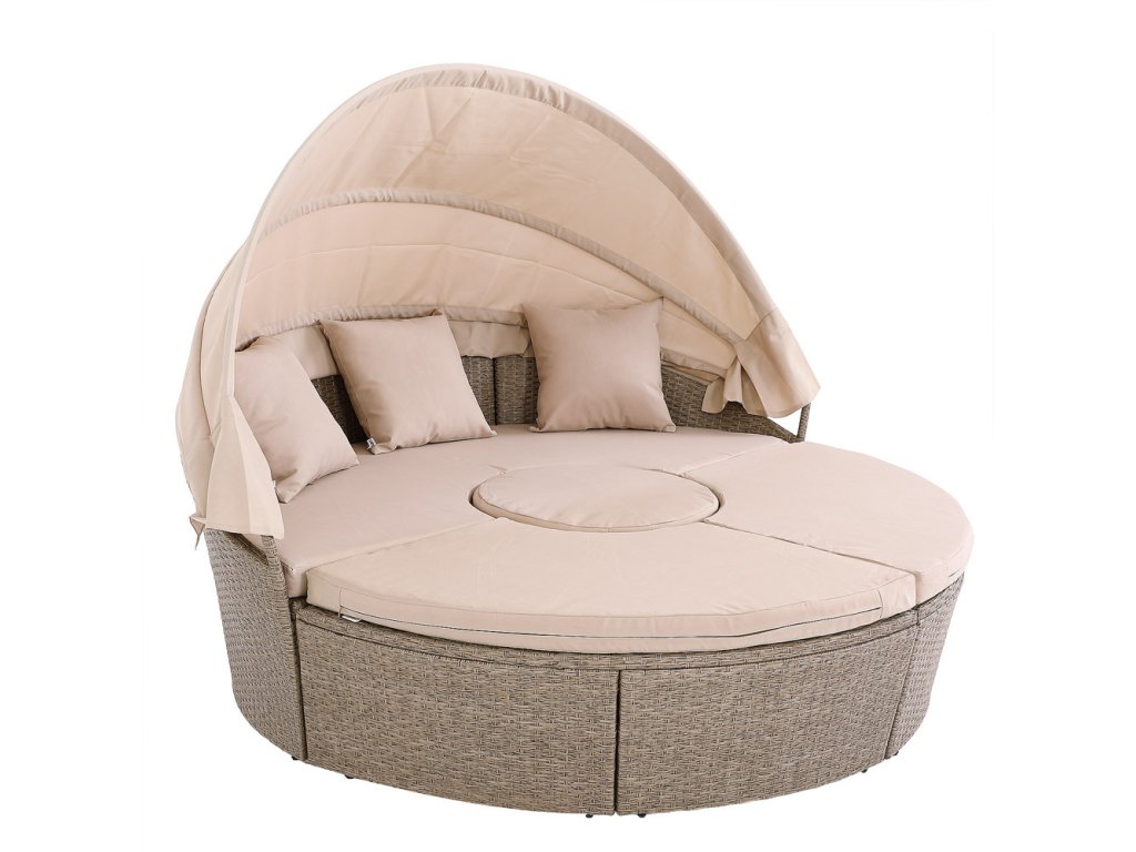 Rattan kerti ágy LAZY Ø185 cm - krém színben
