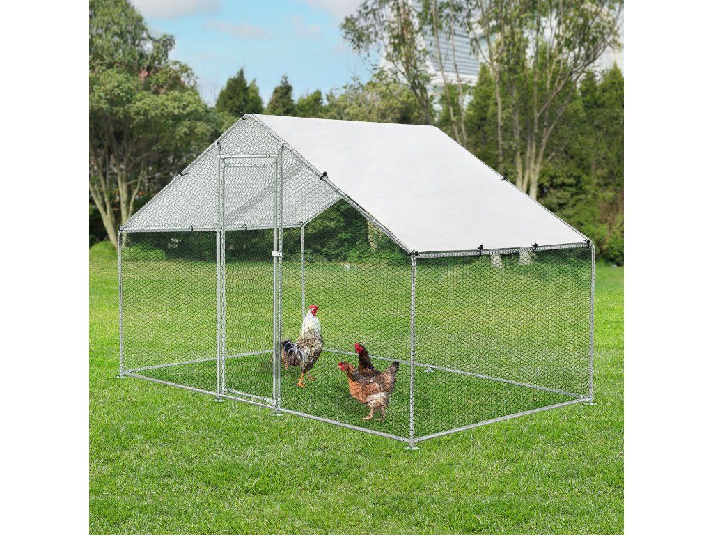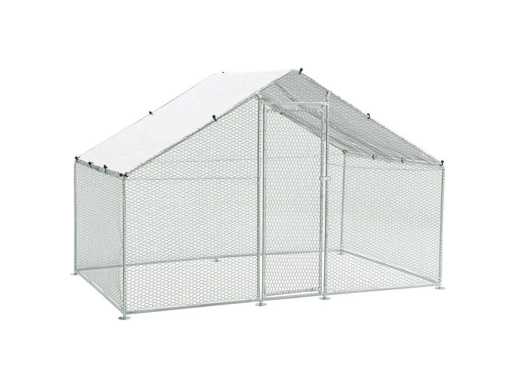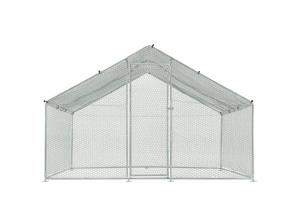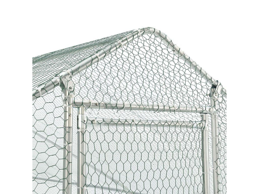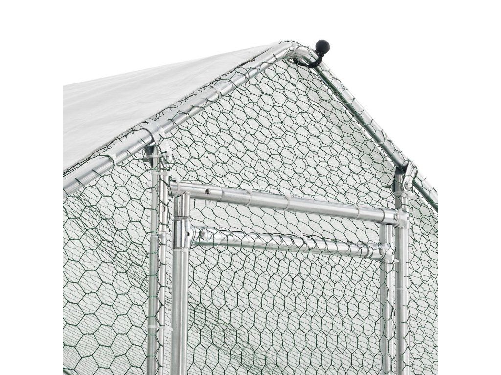 2,5 cm vastag horganyzott csövekkel, rugós dugaszolható kötésekkel rövid időn belül stabil állványzatot építhet. A hálót szorítóhevederekkel rögzíti a kerethez. Igényeinek megfelelően a könnyű csirkeól gyorsan átrendezhető. A 340 x 188 cm-es esővédő alatt állatai rossz időben is jól érzik magukat. A 65 x 174 cm-es, kifelé nyíló átjáróajtón keresztül kényelmesen lépjen be a csirkeólba.