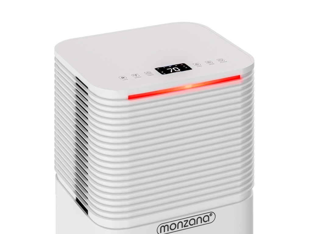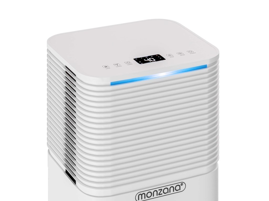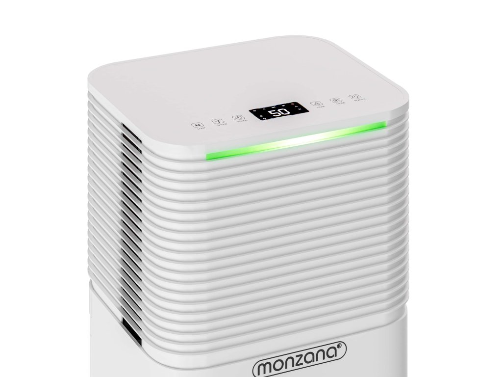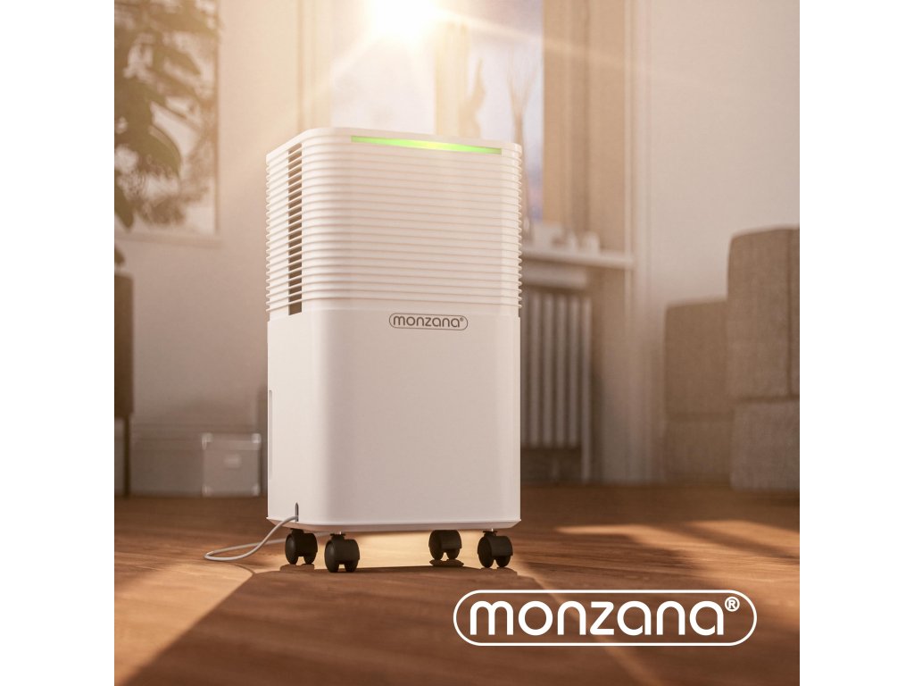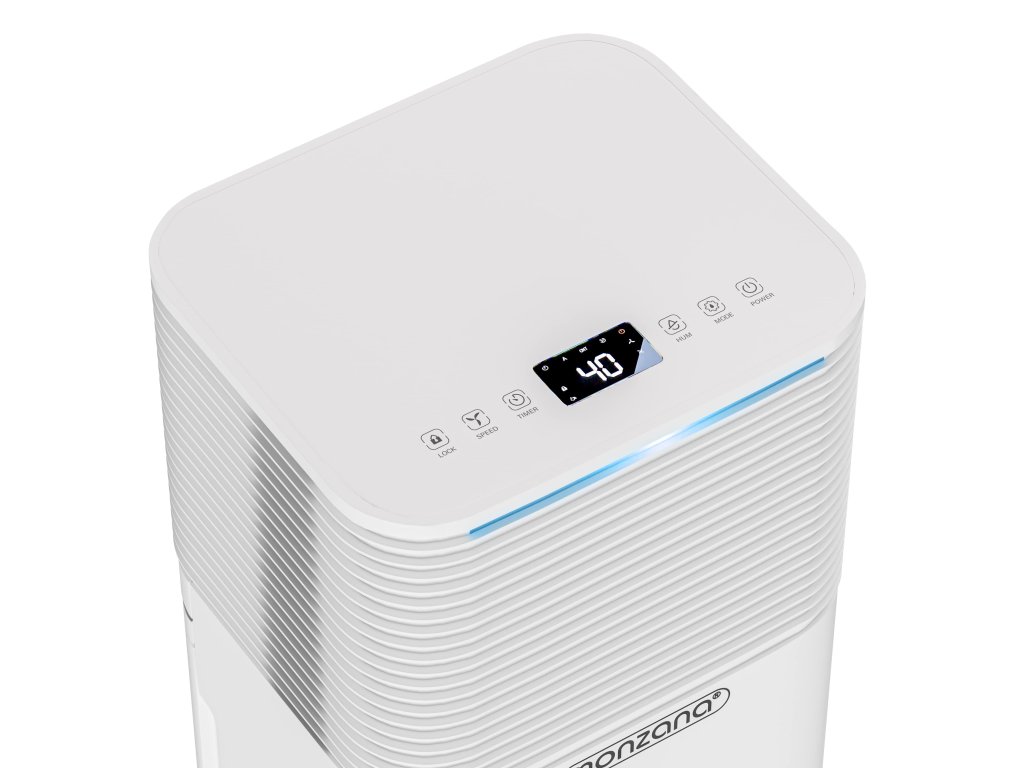 A túlzott páratartalom a háztartásban gyorsan penész kialakulásához vezethet, amely nem csak a bútorokat, könyveket és elektromos berendezéseket károsítja, hanem negatívan befolyásolja az egészségét is. A penész és a kondenzáció gyakori problémák, amelyek allergiához vagy légzési nehézségekhez vezethetnek. A légtisztító hatékony megoldást kínál, amelynek köszönhetően a levegő otthonában friss és egészséges lesz. A 12 l/nap teljesítménnyel hatékonyan eltávolítja a felesleges nedvességet a 15-20 m² területű helyiségekből. Lehetővé teszi a páratartalom pontos beállítását (30 – 80 % RH) és a oldalsó légkivezetőnek köszönhetően minimalizálja a por forgását. A 2 literes tartály fedéllel van ellátva, amely megakadályozza a víz fröccsenését. Az intelligens vezérlést LED kijelző és érintőgombok segítik. A páratartalom állapotát színes fényjelző csík jelzi. Kék jelzi a 45 % alatti értéket, zöld jelzi a 45-60 % közötti páratartalmat és piros jelzi a 65 % feletti értéket. A kényelmes vezérlést LED érintőpanel biztosítja, amely lehetővé teszi a 24 órás időzítő egyszerű beállítását és a négy működési mód közötti váltást. Automatikus mód alkalmazkodik az aktuális körülményekhez és szabályozza a teljesítményt a helyiség páratartalma szerint. Normál mód lehetővé teszi a kívánt páratartalom és a ventilátor sebességének manuális beállítását. Éjszakai mód csökkenti a zajszintet, lecsendesíti a ventilátort és fokozatosan sötétíti a kijelzőt a zavartalan alvás érdekében. Csendes mód biztosítja a maximális csendes működést minimális zavarással. A praktikus 360°-ban forgatható kerekek és a beépített fogantyú megkönnyíti a helyiségek közötti mozgatást. Az öko R290 hűtőközeg nem terheli a környezetet és hozzájárul a fenntartható működéshez. Használat után a készüléket húzózsinóros védőhuzattal lehet védeni, amely meghosszabbítja annak élettartamát.A termék előnyei: