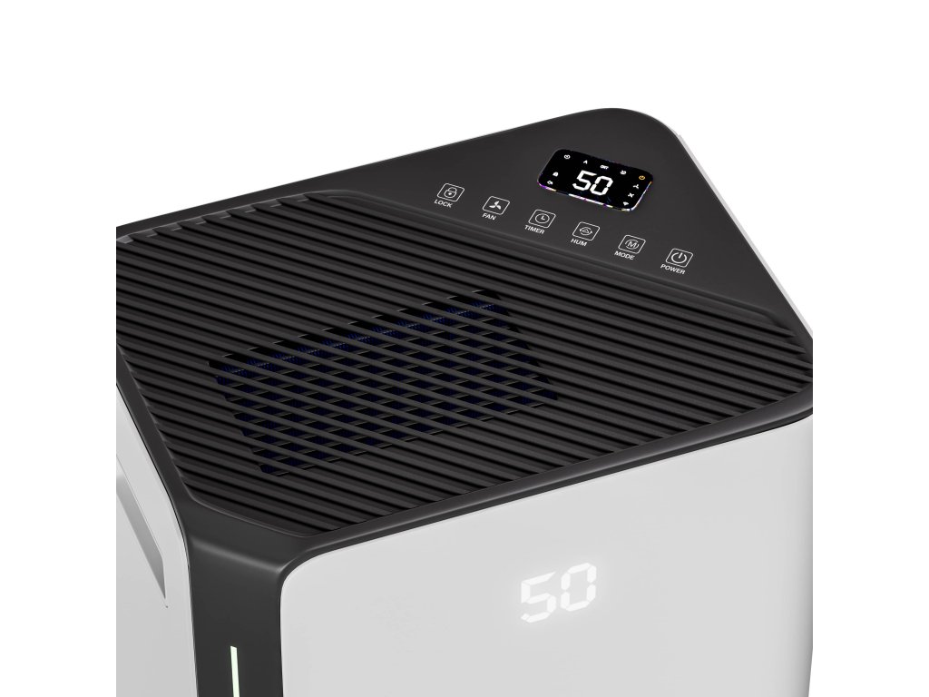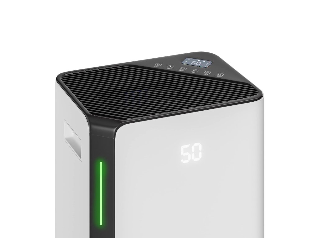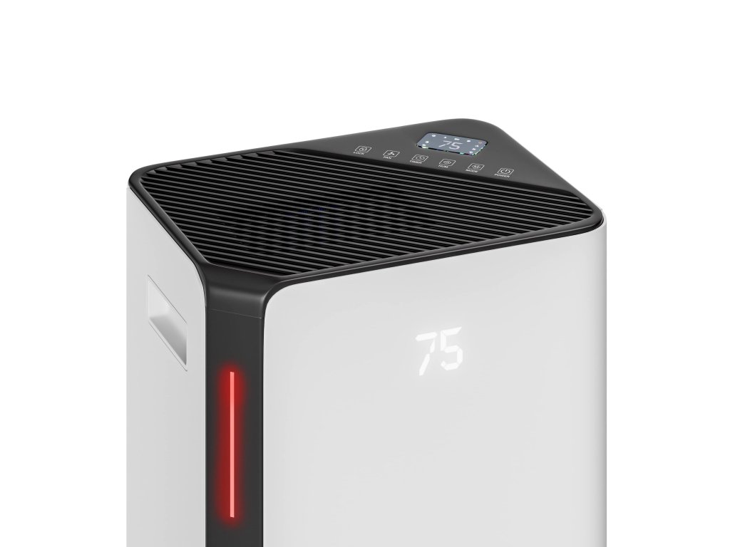 A túlzott páratartalom a háztartásban gyorsan penész kialakulásához vezethet, amely nem csak a bútorokat, könyveket és elektromos eszközöket károsítja, hanem negatívan befolyásolja az egészségét is. A penész és a kondenzáció gyakori problémák, amelyek allergiához vagy légzési nehézségekhez vezethetnek. A légtisztító hatékony megoldást kínál, amelynek köszönhetően a levegő otthonában friss és egészséges lesz. A 200 l/nap teljesítménnyel hatékonyan eltávolítja a felesleges páratartalmat a 20-30 m²-es helyiségekből. Az intelligens vezérlést LED kijelző és érintőgombok könnyítik meg. A modell továbbá WiFi-vel van felszerelve és okostelefonnal, valamint a Smart Home alkalmazással is vezérelhető.A páratartalom állapotát színes fényjelző csík jelzi. Kék jelzi az 45 % alatti értéket, zöld a 45-60 % közötti páratartalmat, míg a piros a 65 % feletti értéket. A kényelmes vezérlést LED érintőpanel biztosítja, amely lehetővé teszi a 24 órás időzítő egyszerű beállítását és a négy működési mód közötti váltást. Az automatikus módban a készülék automatikusan be- és kikapcsolja a kompresszort és a ventilátort a helyiség aktuális páratartalmának megfelelően. Normál módban az ventilátor sebességét és a kívánt páratartalmat az ön preferenciái szerint állíthatja be. Az éjszakai mód aktiválásakor a páratartalom automatikusan 60 %-ra állítódik. Ha 10 másodpercen belül nem hajt végre műveletet, a kijelző fokozatosan elsötétül és a ventilátor csendesebb módba vált. A szárító mód ideális a helyiség páratartalmának kiegyenlítésére a ruhák szárítása közben, ezzel segítve a kellemes klíma fenntartását.A praktikus 360°-ban forgatható kerekek és a beépített fogantyú megkönnyítik a helyiségek közötti mozgatást. Az öko R290 hűtőközeg nem terheli a környezetet és hozzájárul a fenntartható működéshez. A beépített dugattyús kompresszor kellemes hangulatot biztosít, a víztöltöttség jelző pedig még kényelmesebbé teszi a készüléket. Használat után a készüléket húzózsinóros védőhuzattal lehet védeni, ezzel meghosszabbítva annak élettartamát.A termék előnyei:
