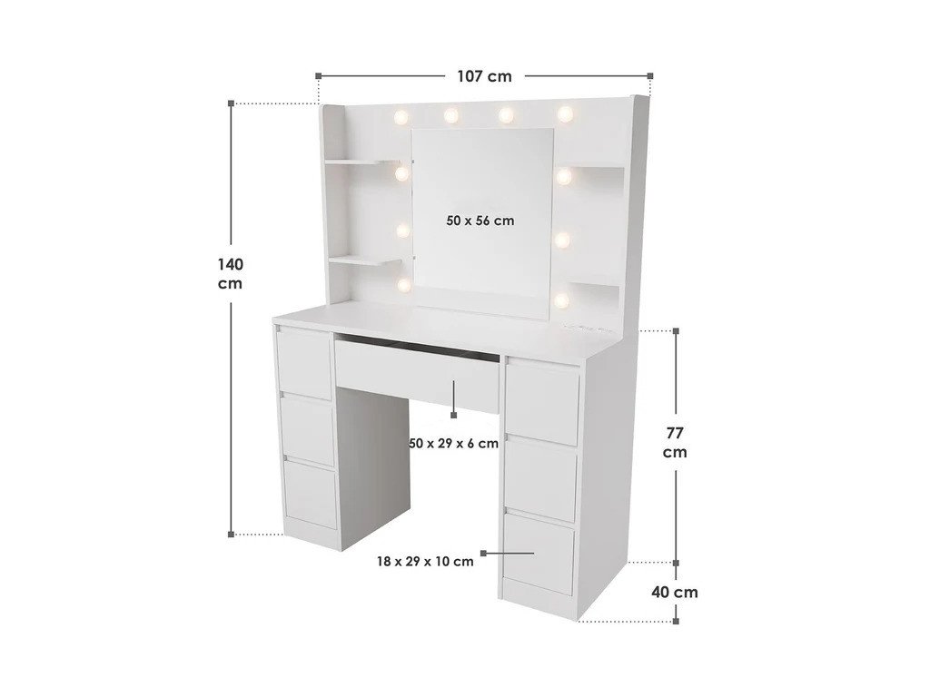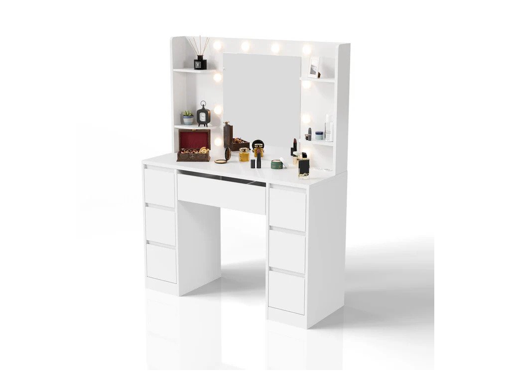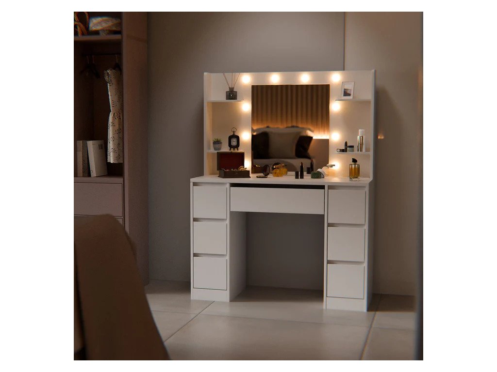 Elegáns sminkasztal LED tükörrel és hét fiókkal