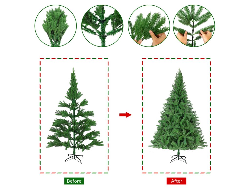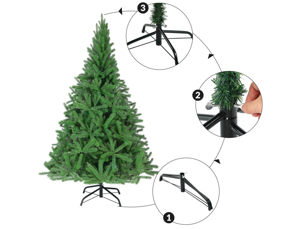 A karácsonyfák azonnal ünnepi hangulatot teremtenek, legyen szó a nappaliról, a bolt kirakatáról vagy a teraszról. Fém alap garantálja, hogy a fa stabilan és megbízhatóan áll az ünnepek alatt. A 15% -kal sűrűbb ágaknak és a robosztusabb szerkezetnek köszönhetően a fa még valósághűbbnek tűnik. Minél több időt tölt el az ágak szétválasztásával, annál szebb és bujább lesz a fa. Az egyszerű összeszerelés dugaszos csatlakozóval megkönnyíti az összeszerelést, így teljes mértékben a díszítésre koncentrálhat.A termék előnyei: