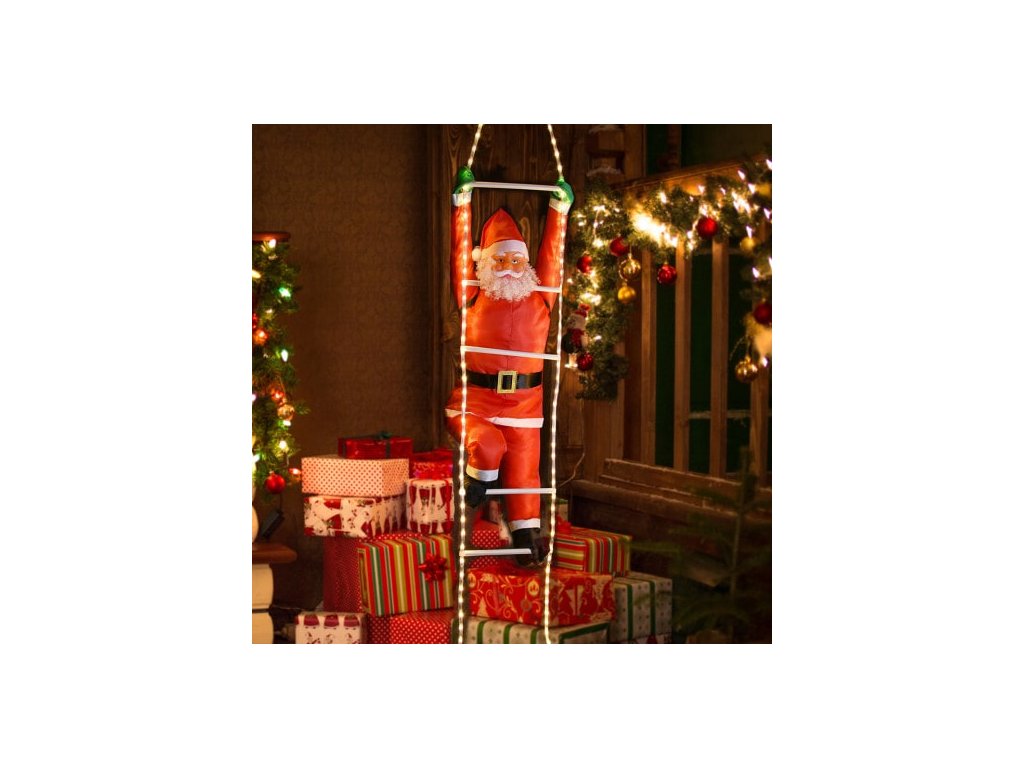A létrán a Mikulás beltéren és kültéren is használható. A teljes létra 120 meleg fehér LED-del van felszerelve, alacsony energiafogyasztással. 8 különböző világítási funkció biztosítja a változatosságot, és az Önnek megfelelő fényt kínálja. A lámpák egy praktikus 13 funkciós távirányítóval vagy az adapteren található gombbal állíthatók be. Ezen kívül egy 6 órás időzítő (6 óra bekapcsolva / 18 óra kikapcsolva) előre be van programozva. A fény 4 fokozatban szabályozható a távirányítóval. Az 5 m-es tápkábelnek köszönhetően könnyedén elhelyezheti a Mikulást, ahová csak tetszik. A karokon és lábakon lévő tépőzáras rögzítések lehetővé teszik, hogy a Mikulást kívánsága szerint helyezze el.
