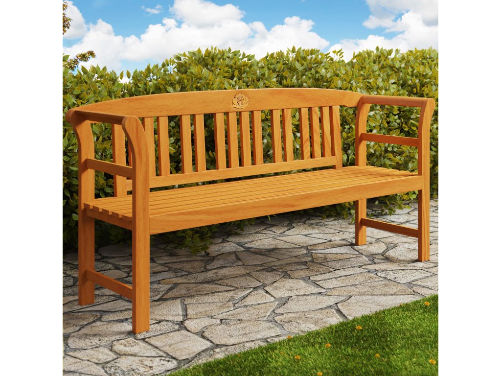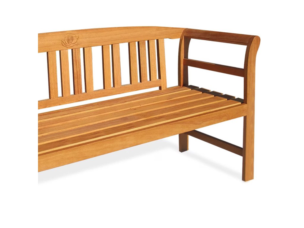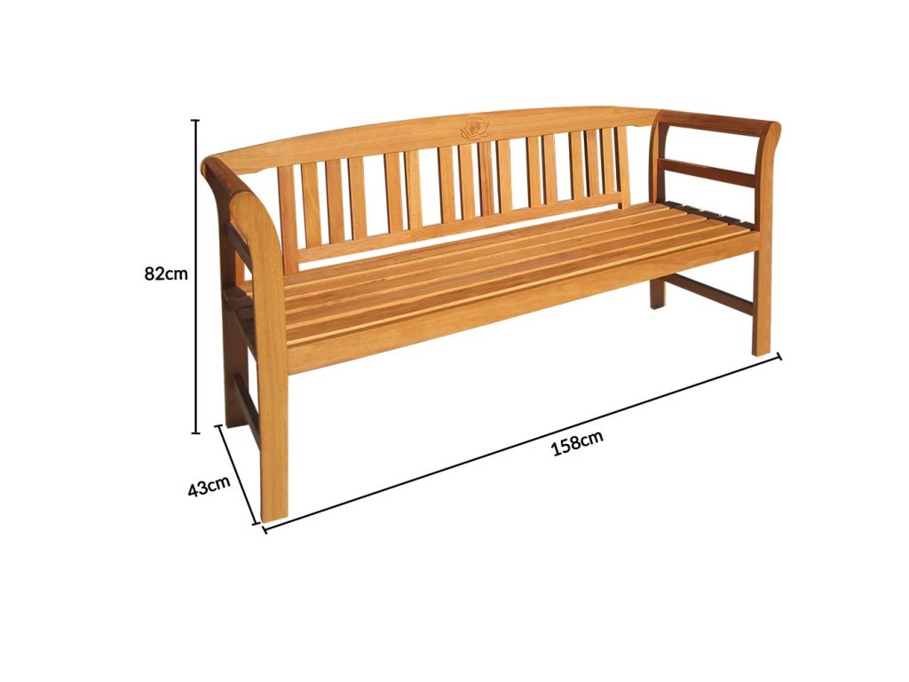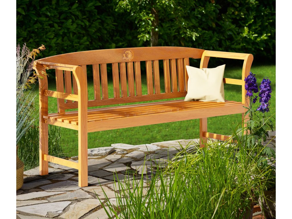 A pad eukaliptuszfából készült, amely tartós és kemény, ideálisan alkalmas a kültéri körülményekhez. Tulajdonságai miatt nagyszerű választás kültérre használat. Csak törölje át a padot rendszeresen nedves ruhával. Természetes színének megőrzése és hosszabb élettartama érdekében javasoljuk, hogy a kerti bútorokat speciális kerti bútorolajjal kezeljék.